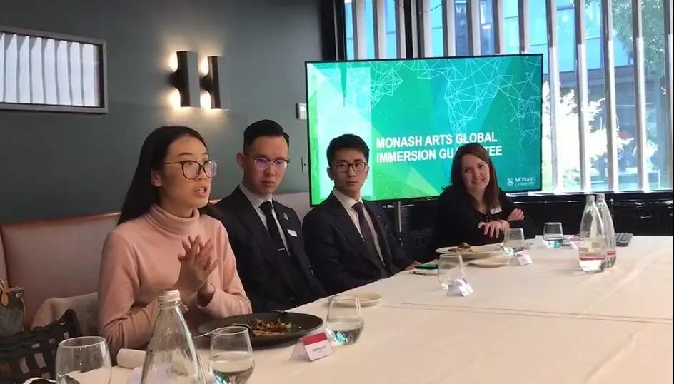2019年10月28日中午,桂冠国际集团墨尔本公司执行董事汪姗姗女士 和 咨询顾问汪明全先生 受邀参加蒙纳士文学院组织的GIG奖学金项目分享会。