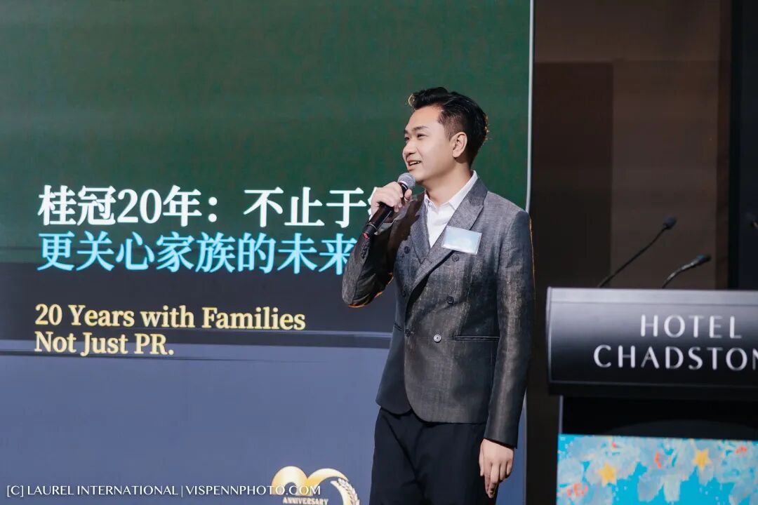 接着,桂冠国际合伙人伏云龙先生带来了对桂冠未来发展的全新蓝图。伏云龙先生提到,过去几年桂冠完成了从“提供服务”到“链接资源”的跨越;而未来,桂冠将迈向更深层次的价值创造。基于这一愿景,伏先生正式发布了桂冠的全新品牌项目——「桂冠仕邦」。
