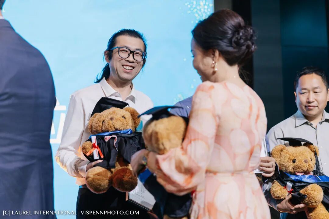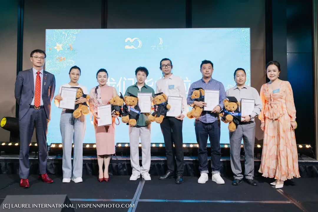 见证桂冠客户荣获澳洲永居身份的荣耀时刻——在全场温暖的掌声中,由澳大利亚勋章获得者、秦皇翻译创始人、1818俱乐部执行主席秦潞山教授,携桂冠国际创始人陈红梅女士、桂冠国际集团合伙人汪姗姗女士、桂冠国际集团合伙人关晟锎先生登台,为新近获得澳洲永居的客户们颁发纪念奖牌与精美毕业熊。
