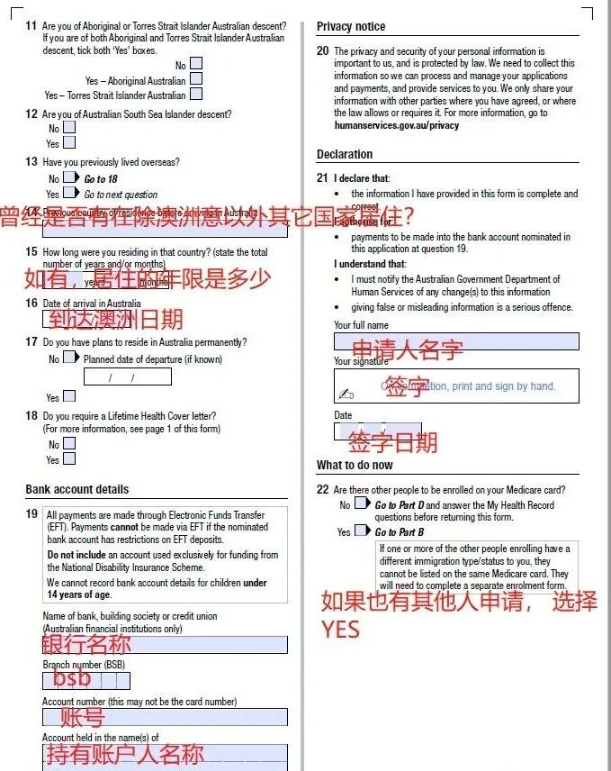 通过下方网站可搜索所在区的邮编寻找最近的 Medicare Center。https://findus.servicesaustralia.gov.au/网申 Medicare 需要回答的问题可以参考纸质版文件,通过下方网址可下载申请表 medicare enrolment form. https://www.servicesaustralia.gov.au/individuals/forms/ms004您可以下拉至