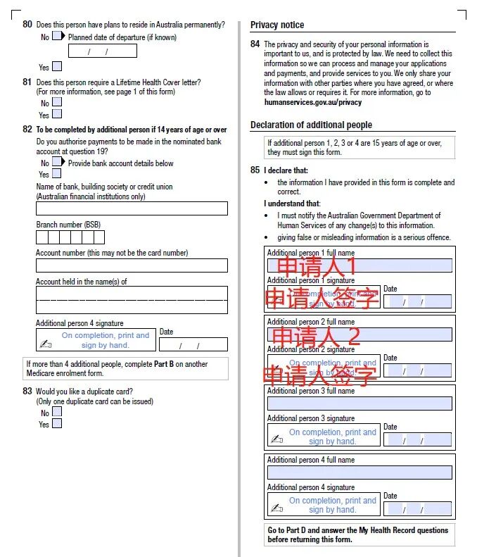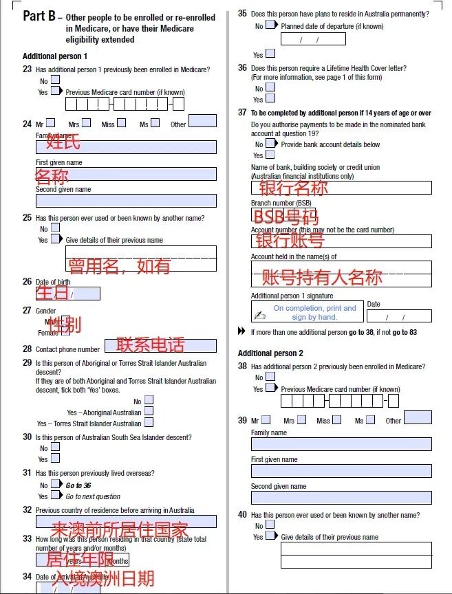 如果有其他申请人一同申请医保卡, 请继续填写PART B。