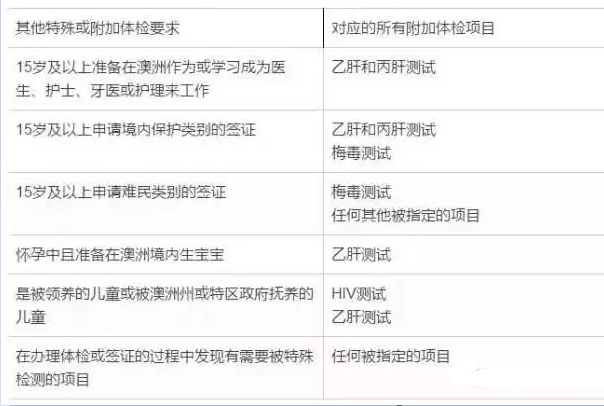 临时入境类的签证体检要求依据申请的签证类别、在澳逗留时间、在澳会做什么、所在国家结核病评级、有什么特殊情况和有没有存在重大病史来判断。